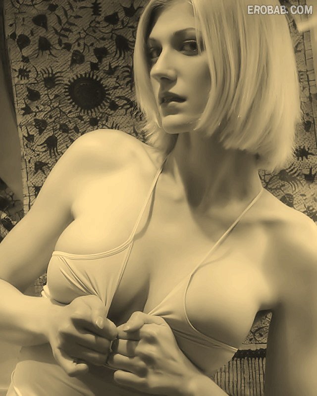 Худая блондинка в футболке обтягивающую грудь (12 фото)