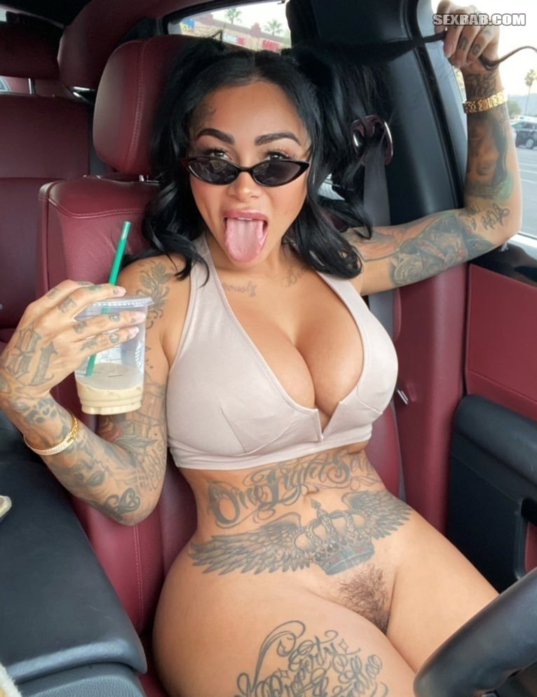 Селфи сисястой латинки с татуировкой на волосатом лобке (15 фото)