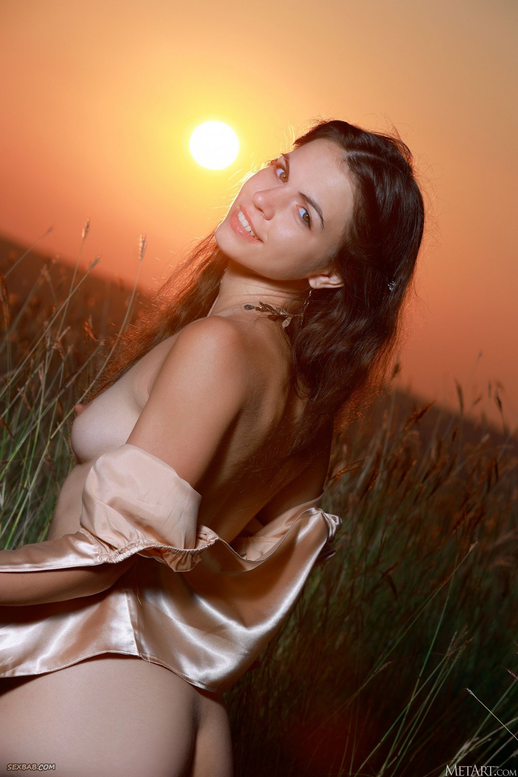 Описание: Страстно и нетерпеливо сорвав с себя всю одежду и красиво позируя всем телом на фоне заката, молодая игривая девица с миниатюрными сисечками и острыми сосками без стеснения хвастается перед камерой своими голыми прелестями на природе и с разных невероятных ракурсов показывает нам свои самые интимные места.