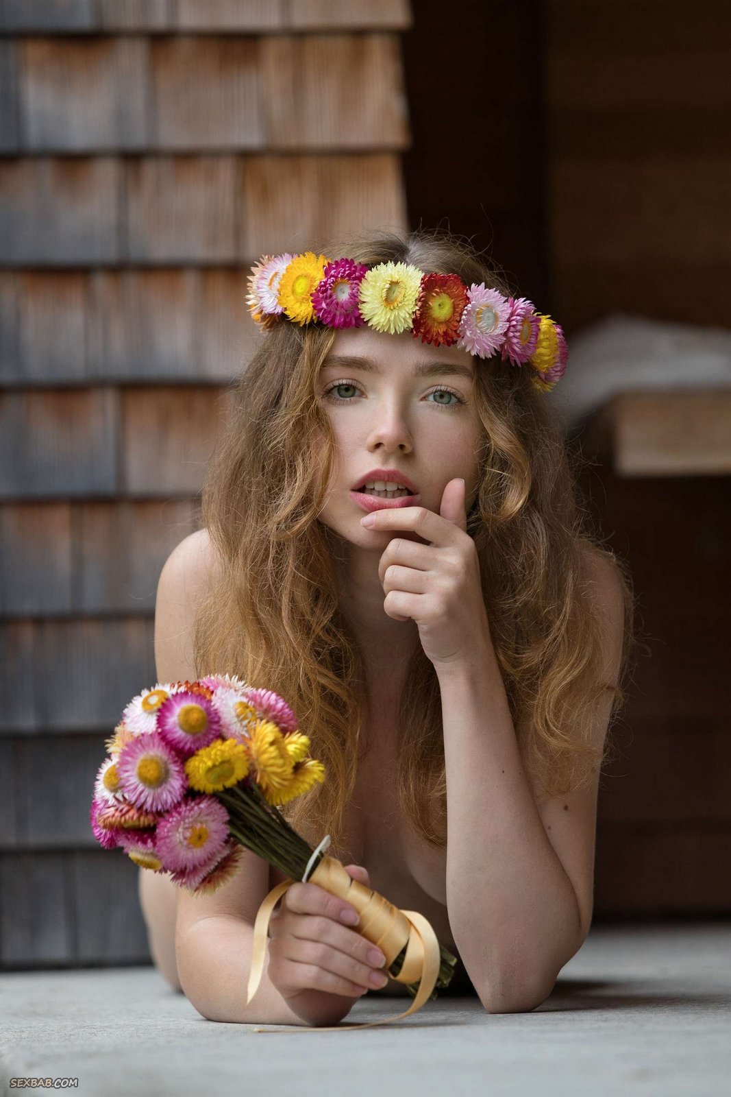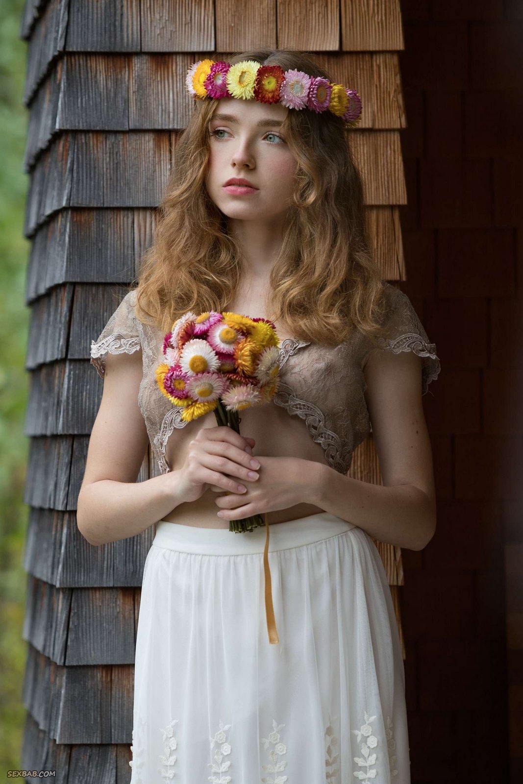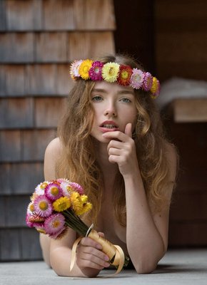 Описание: Украсив себя цветочным венком и эротично снимая с себя всю одежду, очаровательная деревенская красавица хвастается на камеру большой грудью и остальными выдающимися прелестями. Завлекая аппетитными формами потенциальных женихов, нежная милашка охотно демонстрирует себя во всей красе и интригующе засвечивает между бедрами маленькую гладкую писю.