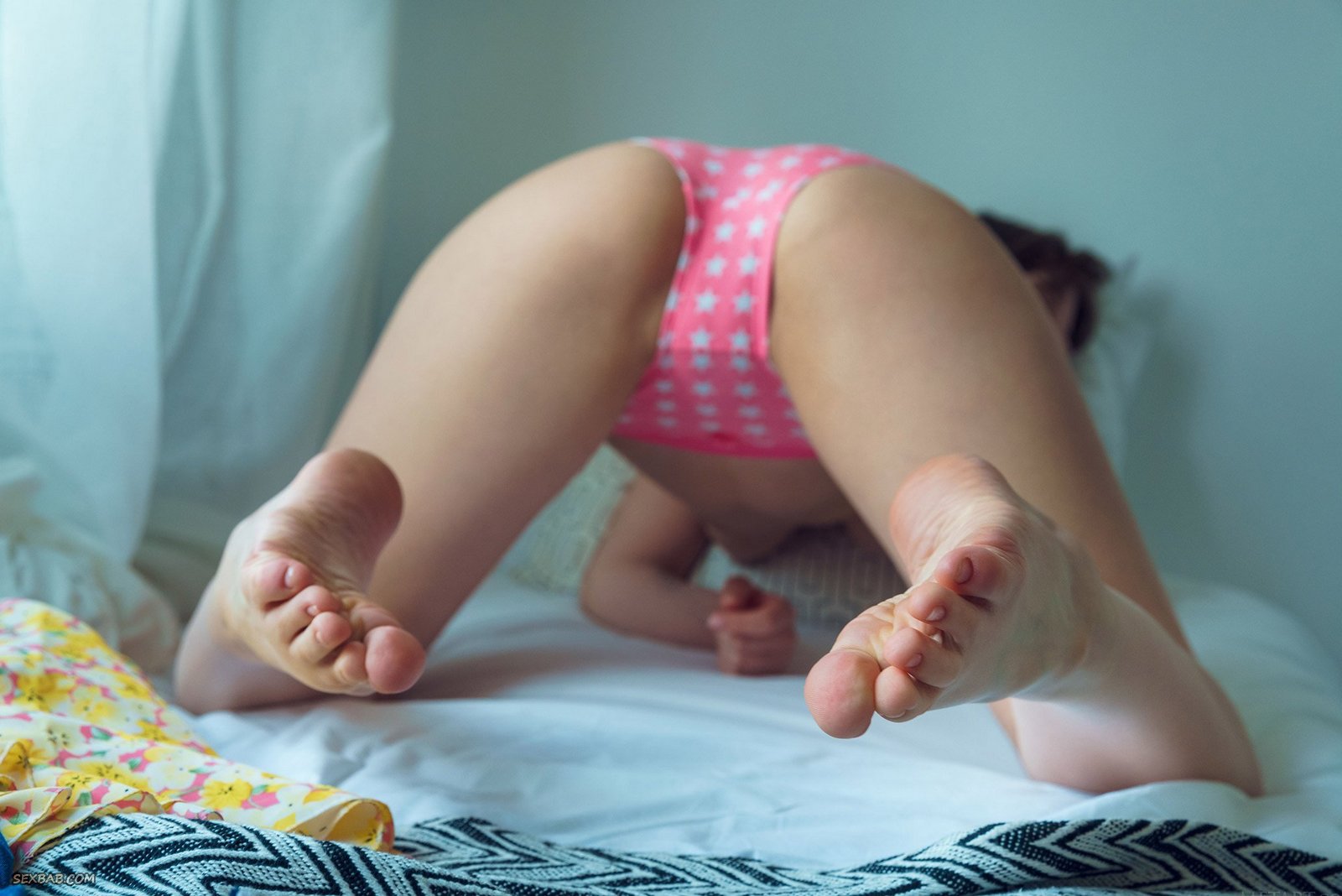 Описание: Забравшись на свою кроватку, молодая девица с брекетами игриво задирает перед камерой короткую юбку и медленно снимает розовые трусики. Медленно раздевшись до гола, аппетитная детка с натуральными титьками развратно встает в позу раком и, чувственно прогибаясь в спине, выпячивает мягкую попку и бритую пухлую киску.