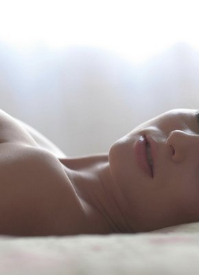 Девка с голой писькой в постели