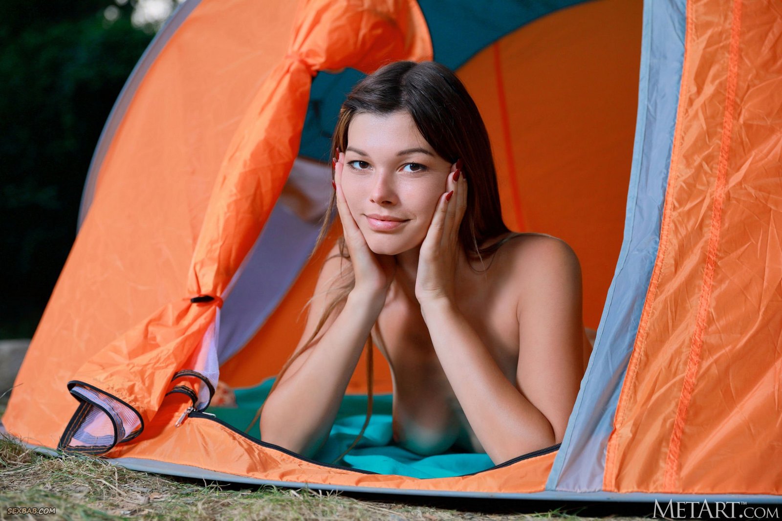 Описание: Игриво сняв с себя майку и короткие шорты, голая туристка развратно позирует в большой палатке на природе. Молодая девушка с красивыми упругими сиськами похотливо выпячивает на камеру свою сочную задницу, а затем с широко раскрытой промежностью демонстрирует всем свою бритую сочную письку.