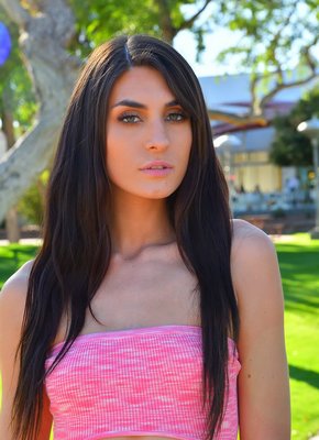 Описание: Прогуливаясь на улице, нежная стройная милашка с длинными локонами эротично позирует в облегающем платье, порой присаживаясь на корточки и мило улыбаясь. В будущем устроившись на лавочке и раздвинув ноги, сексуальная девушка немного засветила волосатую письку с лобком.
