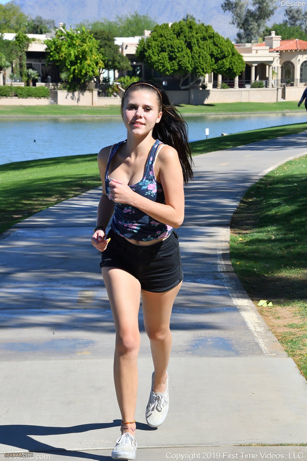 Описание: Симпатичная молодая девушка в коротких шортах и майке, наслаждаясь летним днем, позирует на утренней пробежке. Чередуя в процессе разные необычные ракурсы, сексуальная спортсменка довольно скоро открыла нашему взору свой лифчик, из которого вываливается её аппетитная грудь с красивым сосочком.