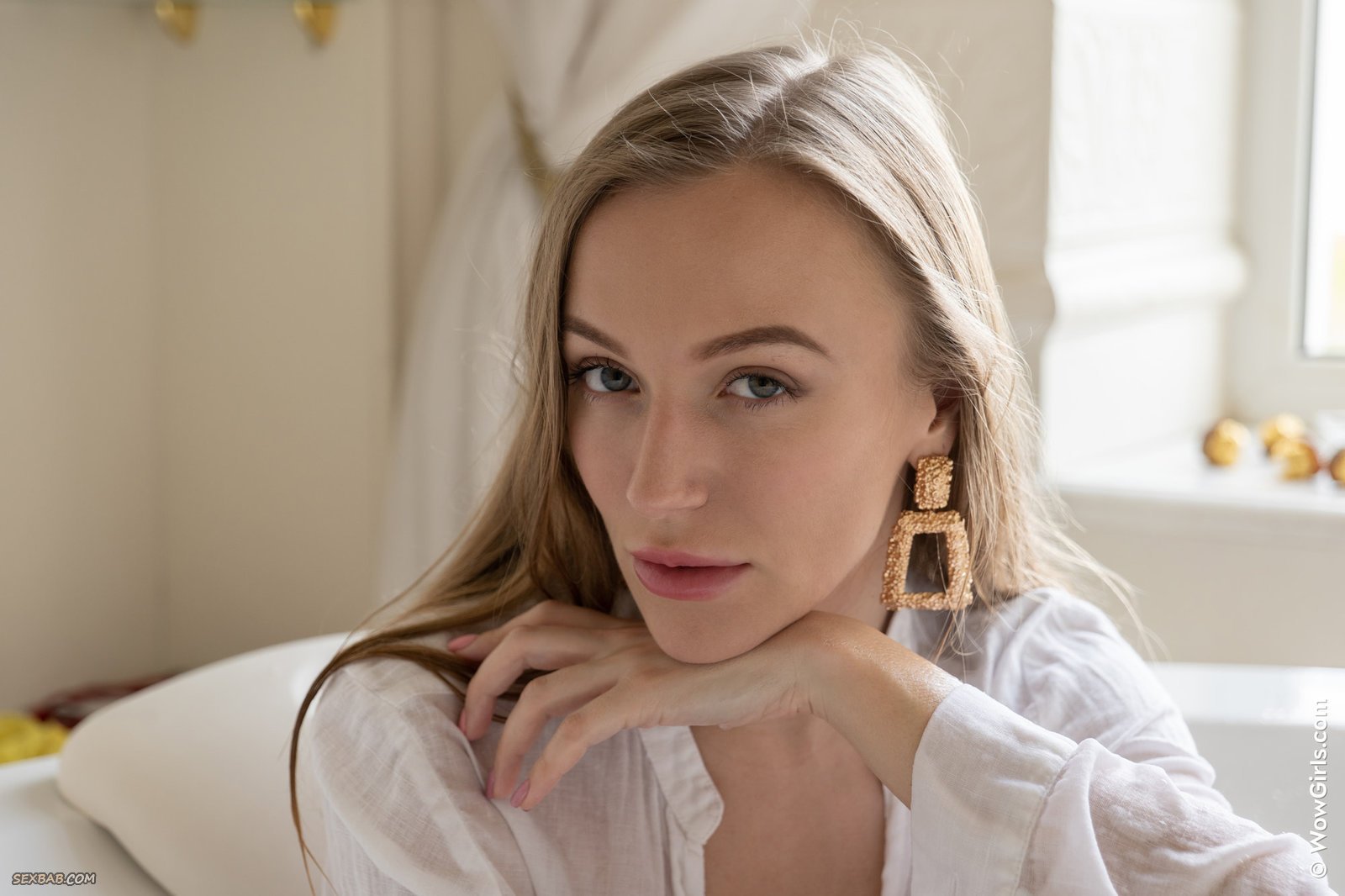 Описание: Страстная и сексуальная блондинка в одной лишь мокрой рубашке чувственно позирует в ванне, наполненной горячей водой и пеной. Красивая девушка нежно поглаживает на камеру свои упругие натуральные сиськи, а затем крупным планом демонстрирует нам свою влажную сочную попку и нежную бритую киску.