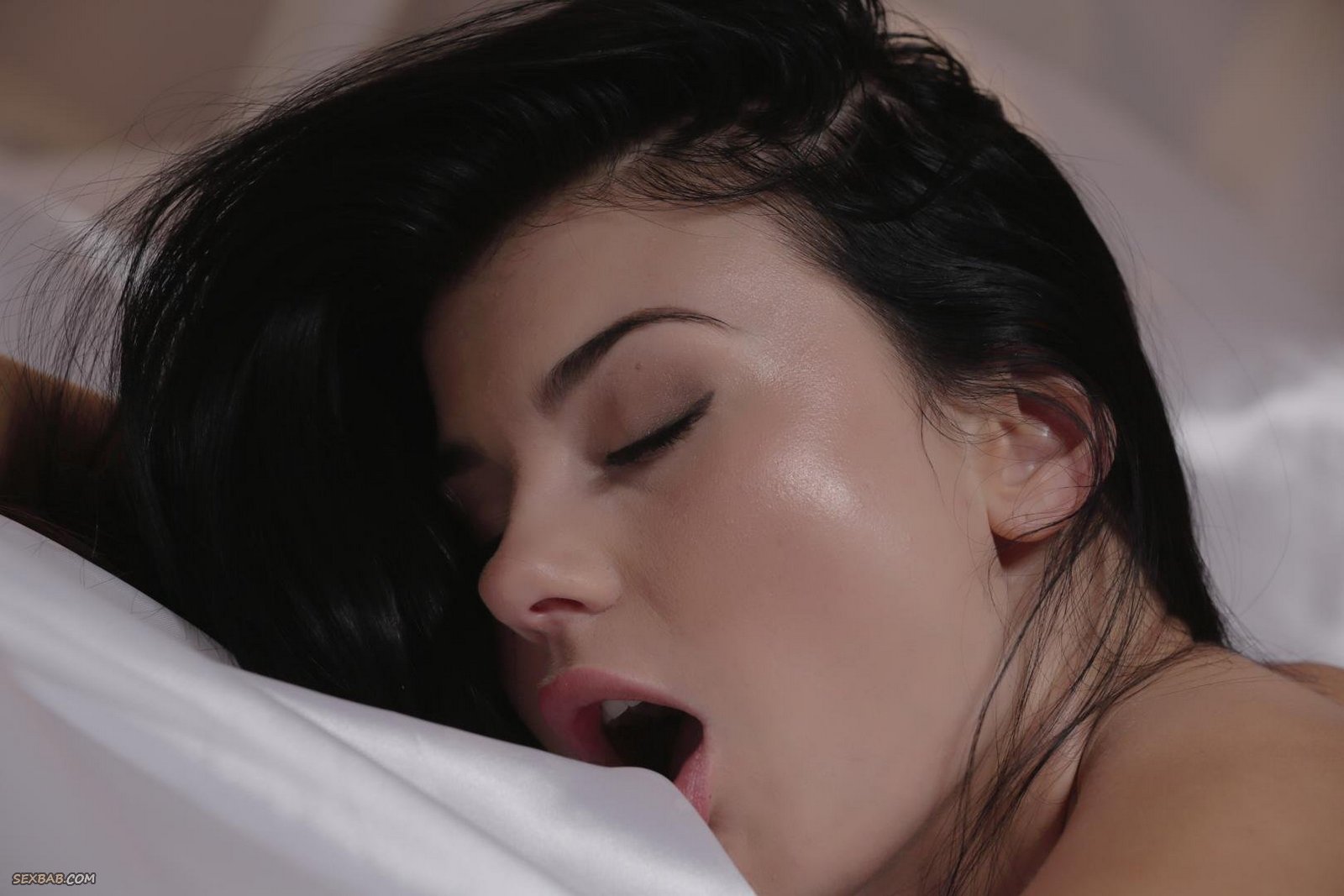 Шикарная брюнетка мастурбирует в постели