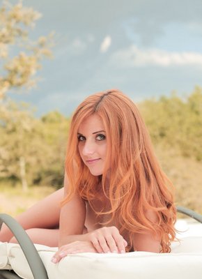 Описание: Наслаждаясь солнышком рядом с бассейном на шезлонге, рыжая молодая девушка с сексуальным телом принимается медленно снимать купальник. Оголившись, привлекательная девушка с упругими возбужденными сиськами подробно демонстрирует гладко выбритую голую писю, для этого раздвигая ножки лежа на боку.