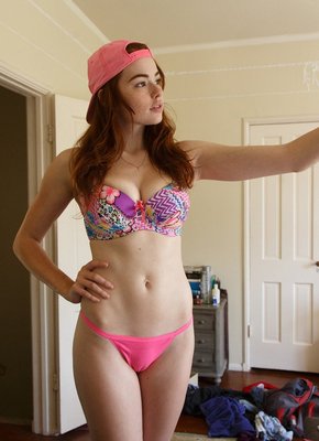 Описание: Очаровательная рыжая бестия с веснушками разгорячёно позирует у себя дома в купальнике, одновременно фотографируясь на телефон и профессиональную камеру. Расположившись в конечном итоге на кровати, сексуальная красотка возбуждающе натягивает трусики, позволяя нам взглянуть на "верблюжью лапку", вырисовывающуюся сквозь их ткань..