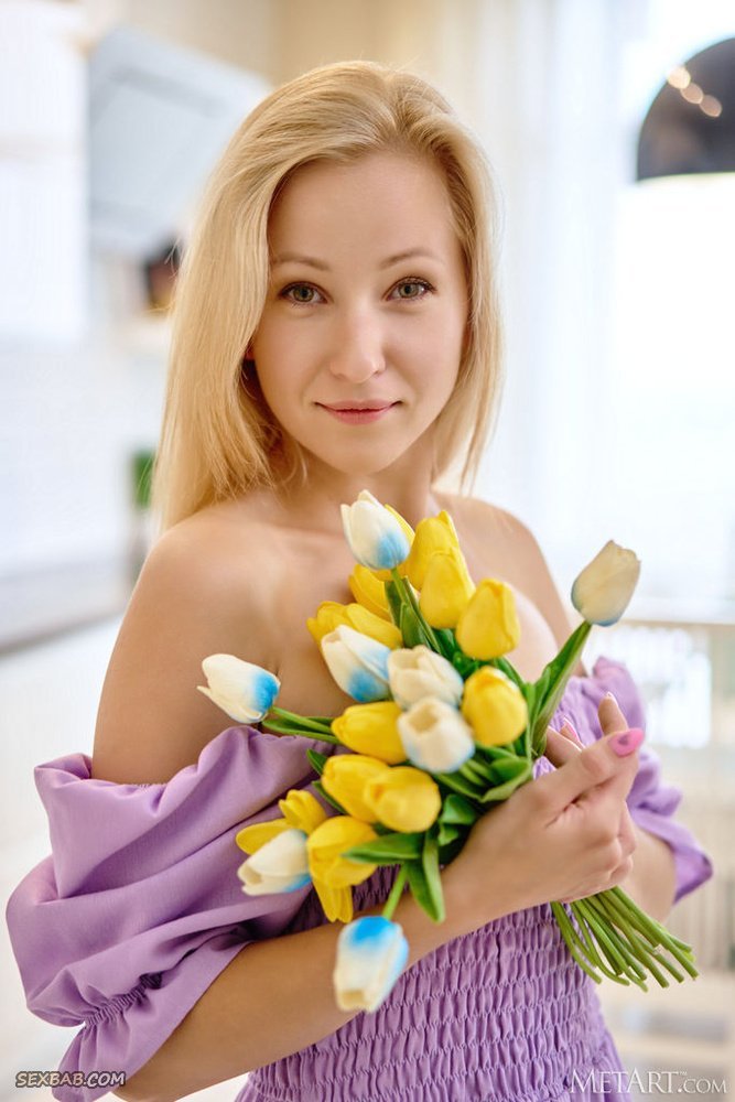 Описание: Получив в подарок цветы и захотев как-то отблагодарить своего поклонника, нежная девушка с плоскими титьками и маленькими острыми сосками постепенно разделась до гола и, устроившись на столе с широко раздвинутыми ногами, предлагает поскорей войти в ее бритую письку.