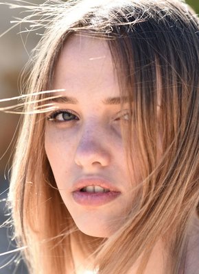 Описание: Выбрав наиболее подходящее местечко рядом с речкой на природе, худая девица с милой широкой улыбкой начала эротично позировать в джинсовой юбке и майке, в будущем все же медленно оголяясь. В обнаженном виде стройная крошка с натуральными буферами располагается на песке и прогибаясь раком выставляет попочку с бритой щелкой.