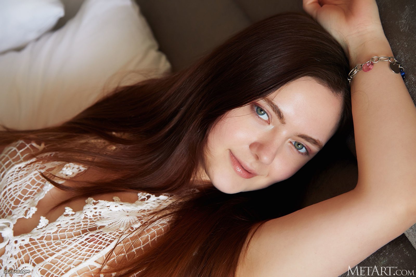Шатенка с маленькими титями на кровати