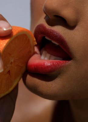 Мулатка с красными губами обнажилась на стуле