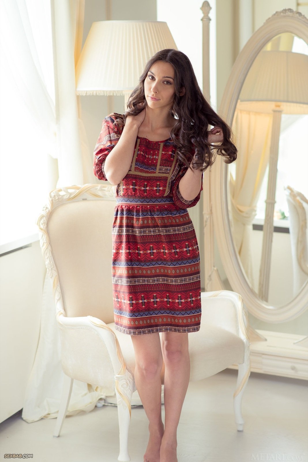Описание: Высокая элегантная и очень хорошенькая брюнетка, позируя перед нами на стуле, невероятно эротично снимает платье, под которым не оказалось нижнего белья. Чередуя разные ракурсы и поглаживая себя руками, обнажённая красотка с наслаждением продемонстрировала маленькие сиськи и бритую письку с красивой попкой от которой не оторвать глаз.