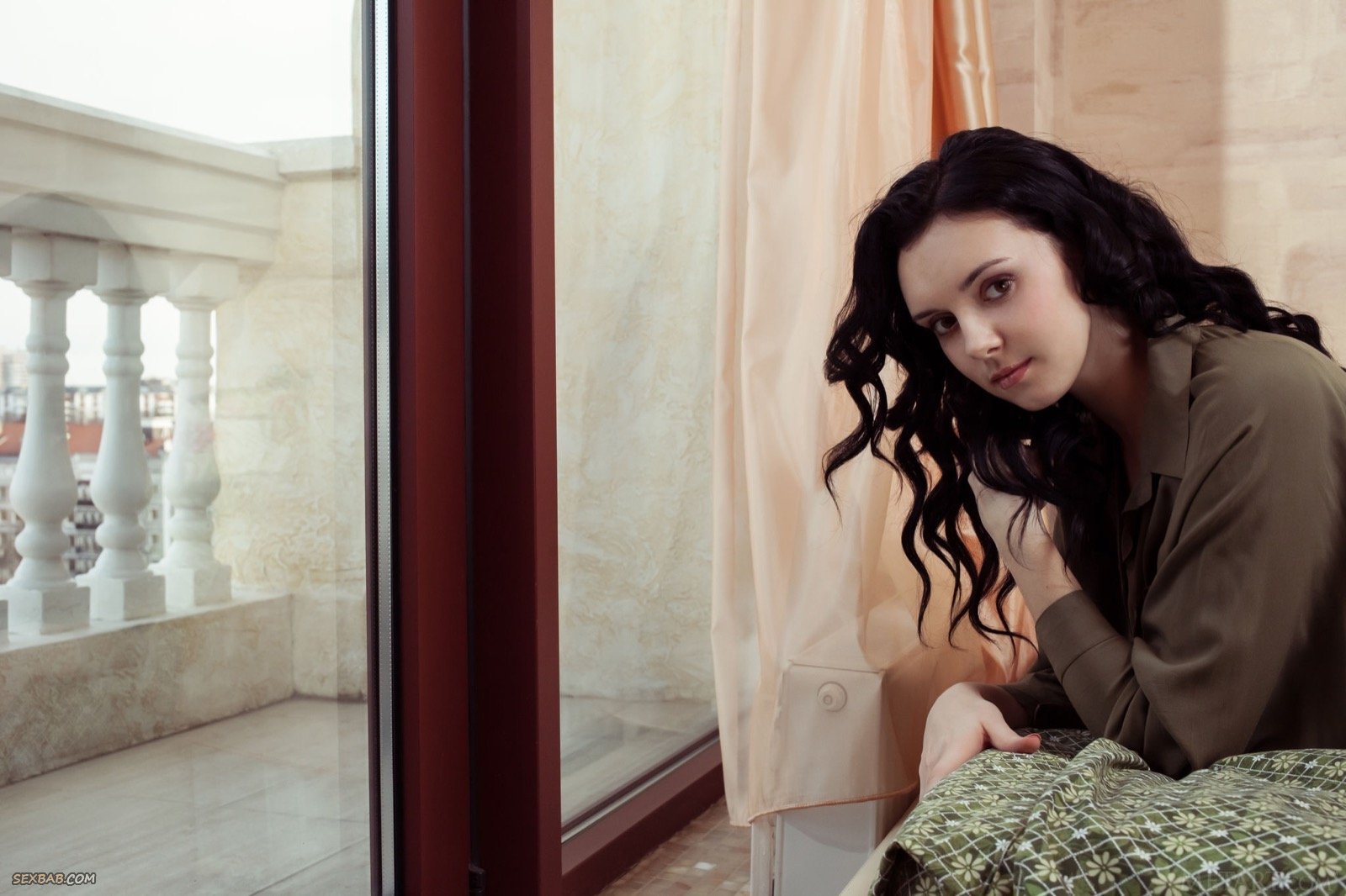 Девушка с натуральными сиськами раздевается дома